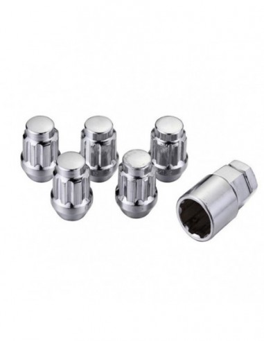 Juego de 4 tuercas anti-robo + llave de seguridad para llantas de aluminio métrica de 12x1.25 , para base de llanta CONICA.